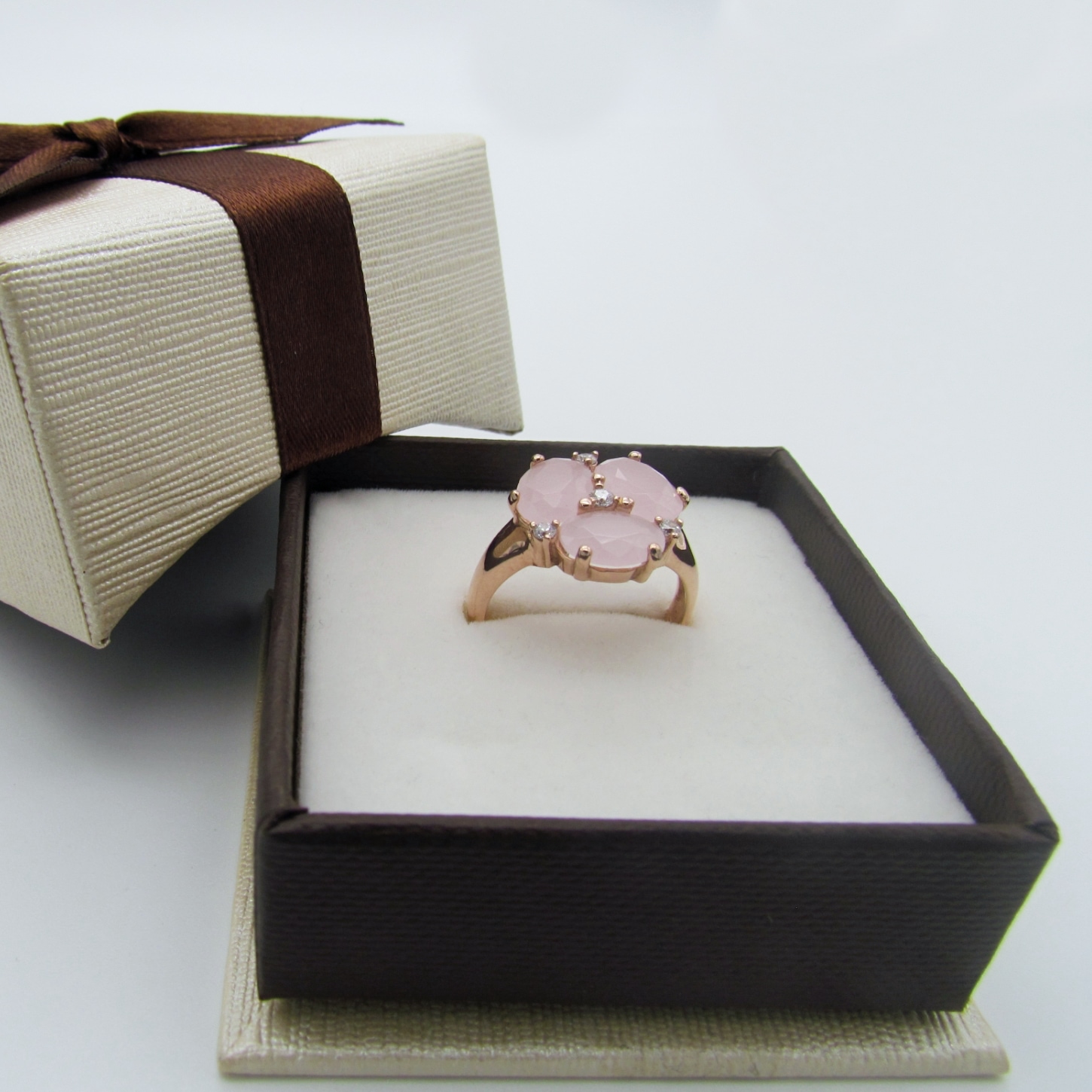Anello donna in argento 925 color oro. Con pietre in cristallo rosa e zirconi per dare un senso del romantico. Anello con finiture che sapranno esaltare il tuo carattere.