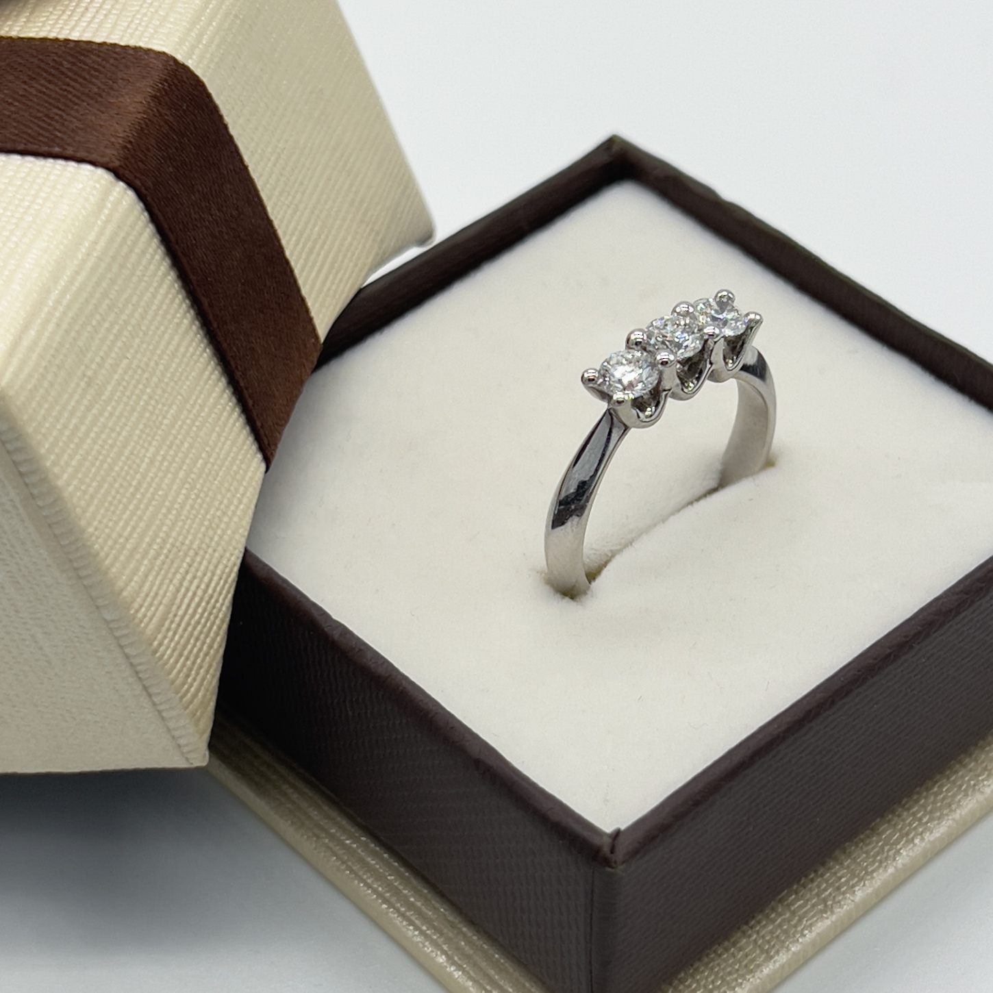 Un anello di gran significato. Le tre pietre che lo compongono simboleggiano amore eterno.