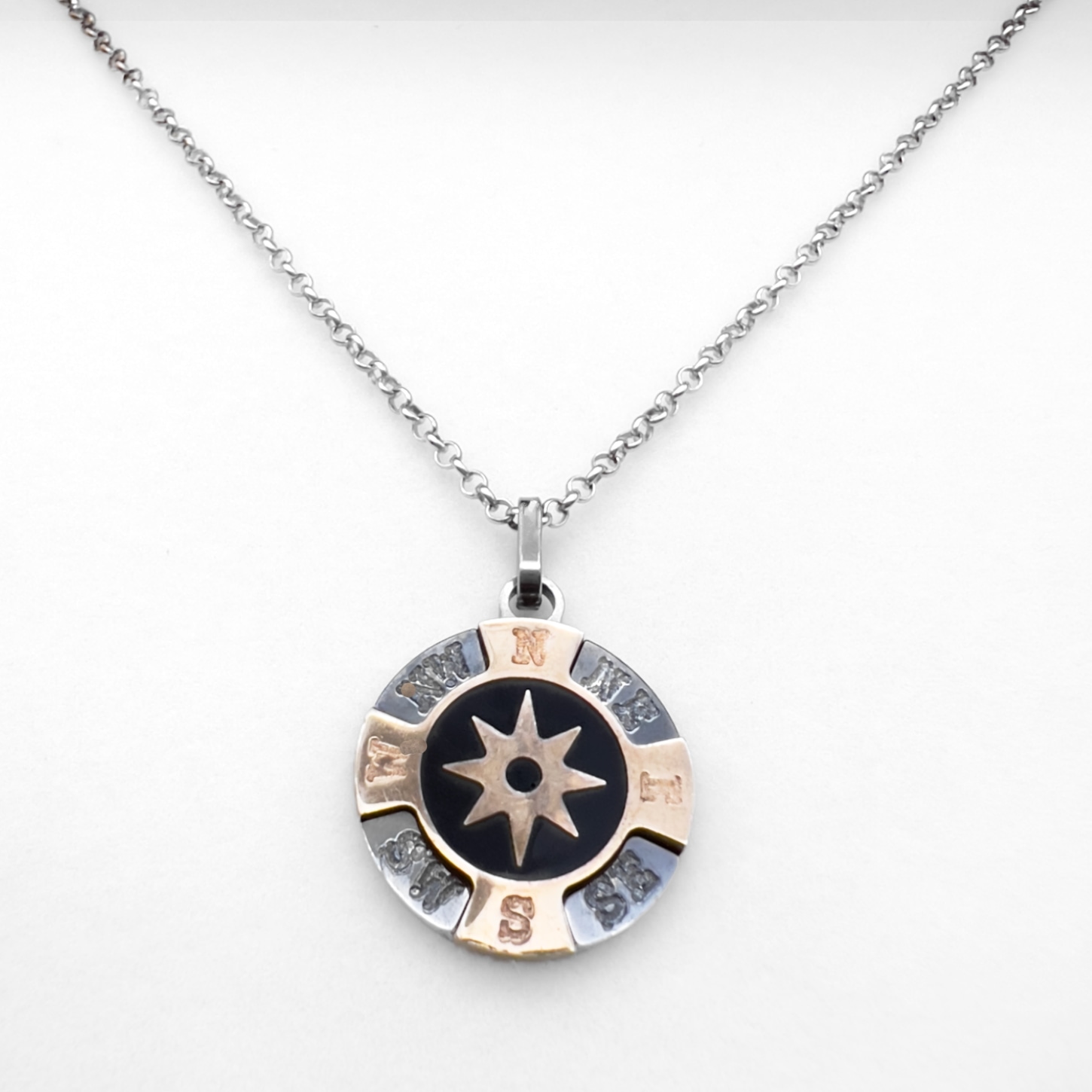 Collana da uomo con rosa dei venti come pendente.